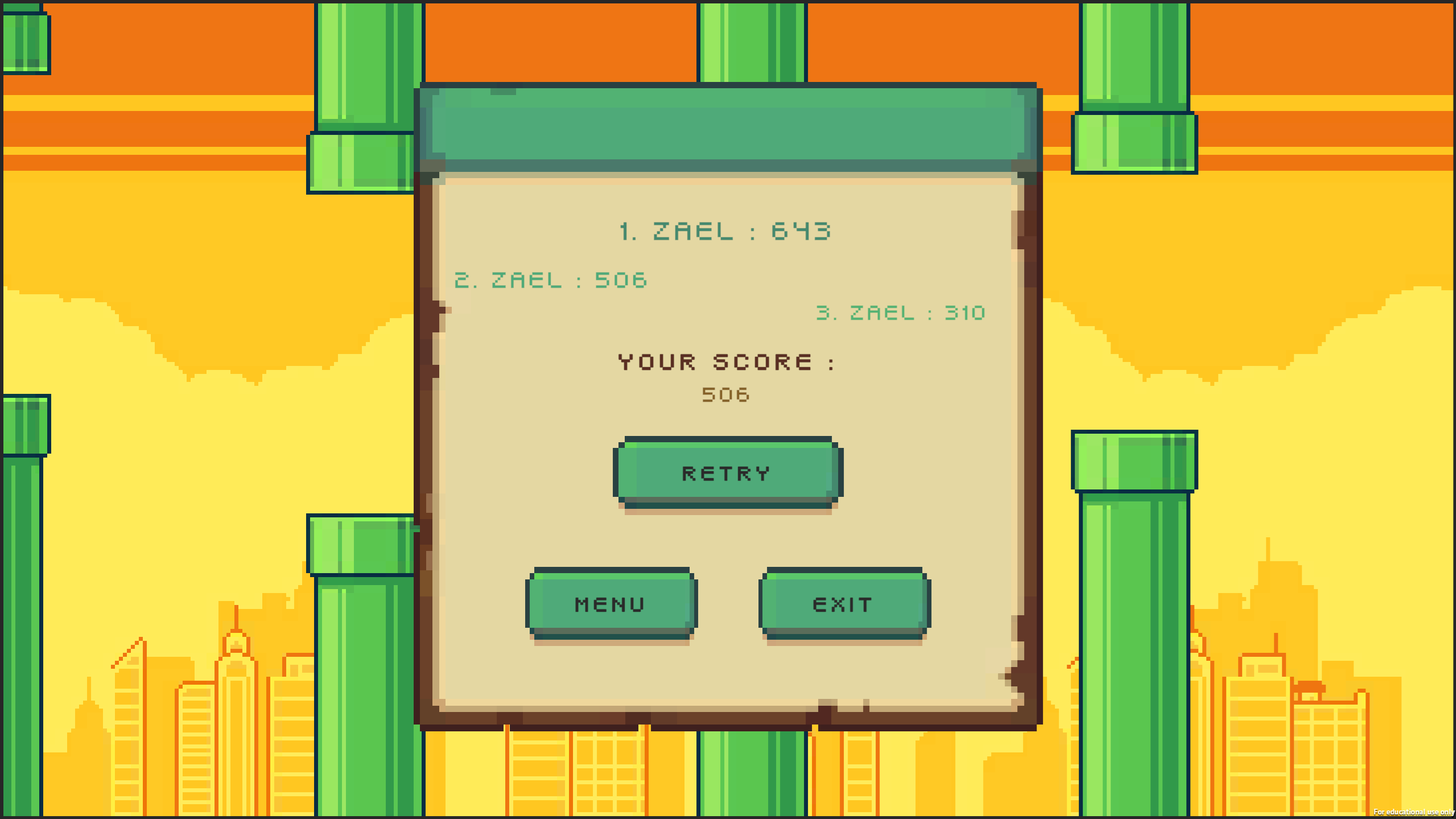 Tap your screen or hit the Spacebar to flap your wings. Your mission is simple: pass between the pipes. But beware... the higher your score, the more intense the game gets!